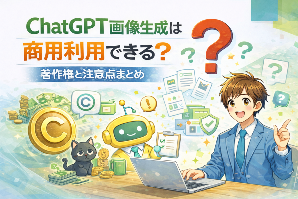 画像生成機能の普及にともない、こうした疑問を持つ人が増えています。この記事では、2026年現在の一般的な利用ルールをもとに、ChatGPT画像生成の商用利用可否や著作権の考え方、注意点を分かりやすく整理します。
